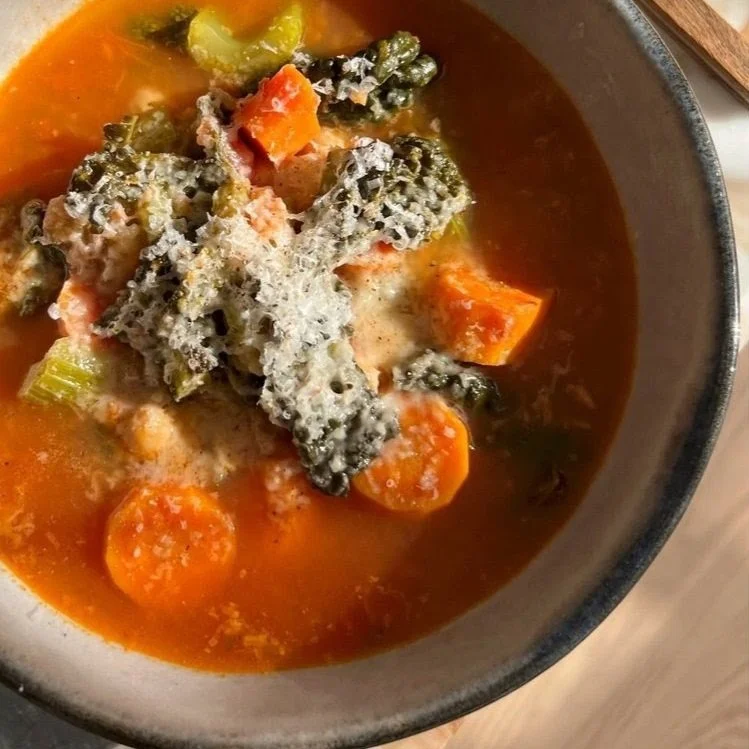 It isn’t always easy to get several servings of veggies during the cold fall and winter months. That's why my wife and I have been loving this minestrone recipe packed with nutrients and nourishment that warms the soul. We add ground turkey or pork to increase protein (and boost flavor!), but a vegetarian/vegan sub could be to add more legumes or top with tofu croutons. Supercharge it with some homemade broth, and I think you’ll be a fan too.